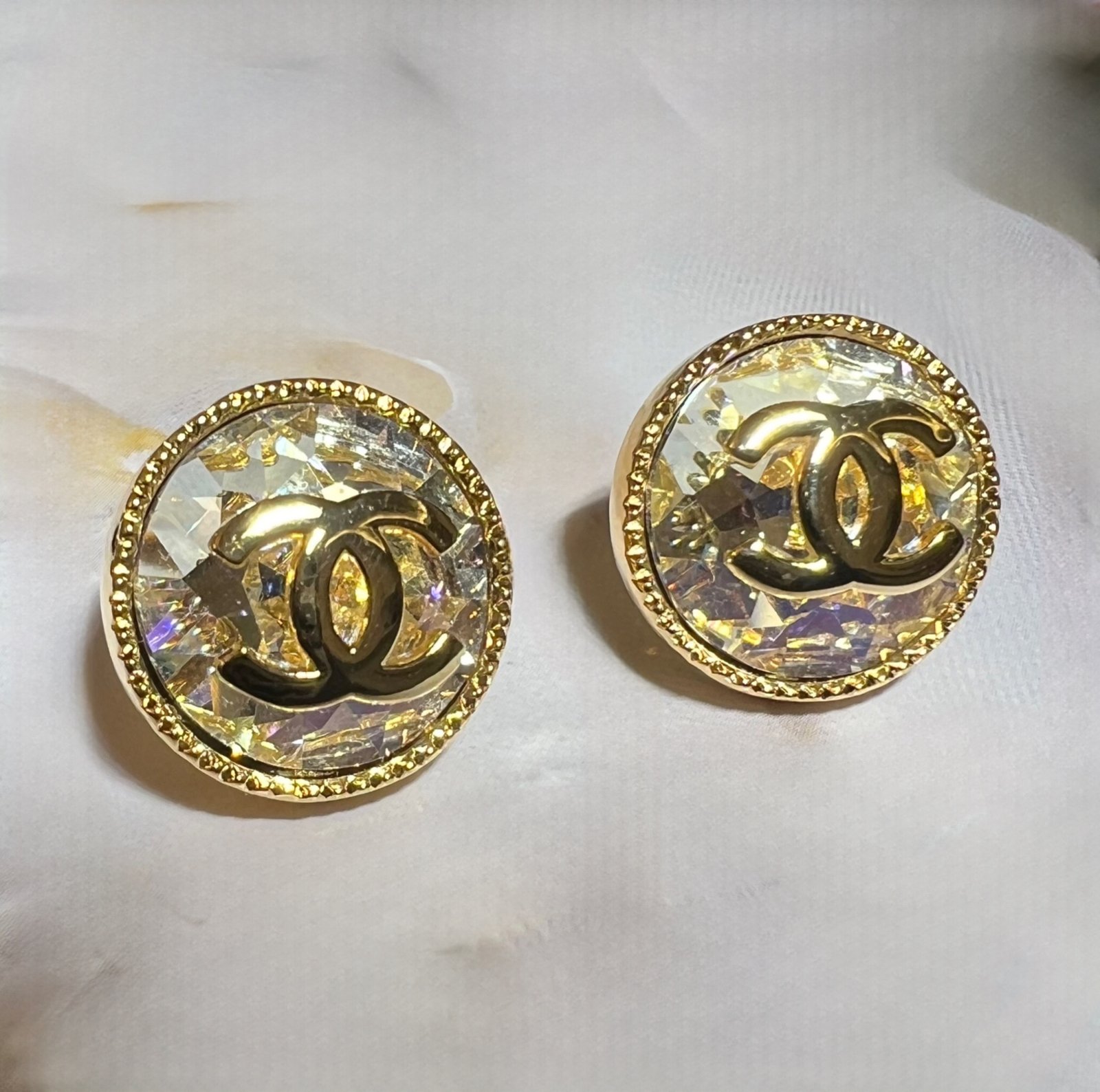 Σκουλαρίκια ‘τύπου Chanel ‘ χρυσό με γυαλιστερό πετράδι ατσάλι ποσότητα