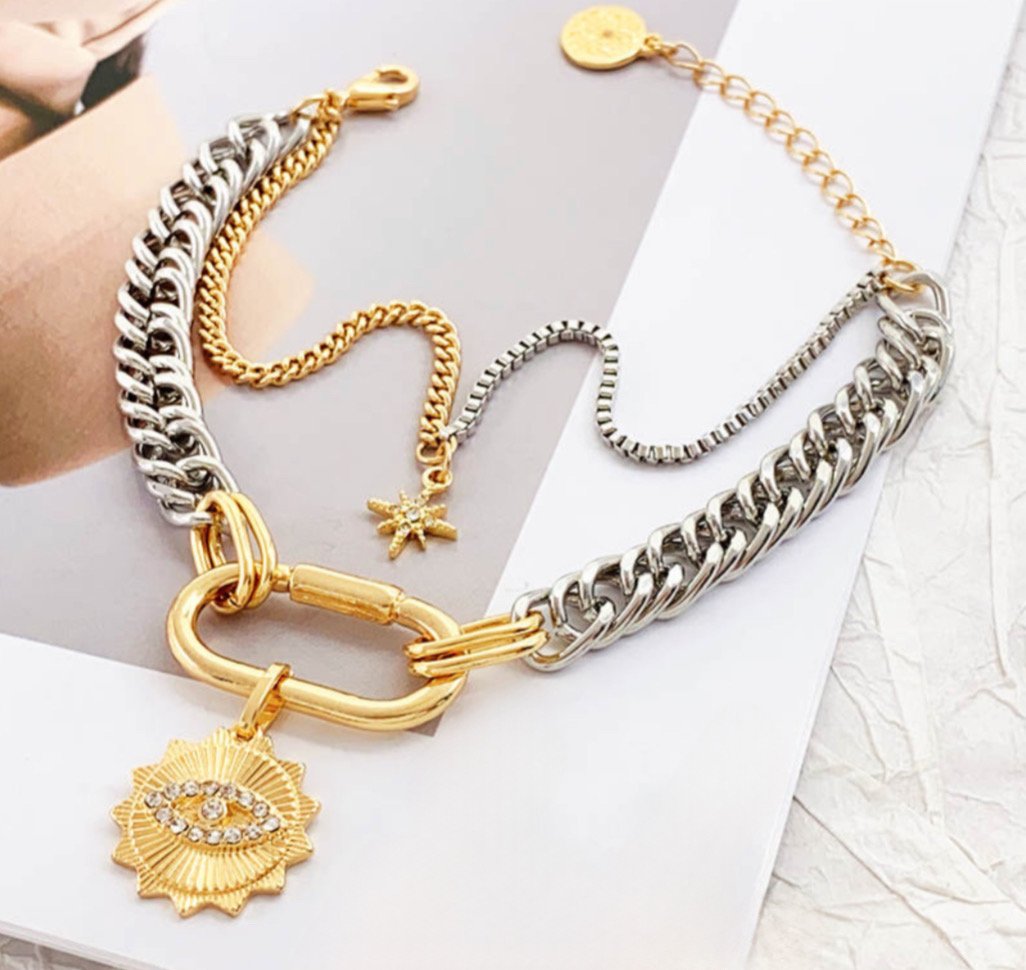 Βραχιολι διπλό με κρεμαστό μάτι και αστέρι χρυσό ασημι ατσάλι με επέκταση
