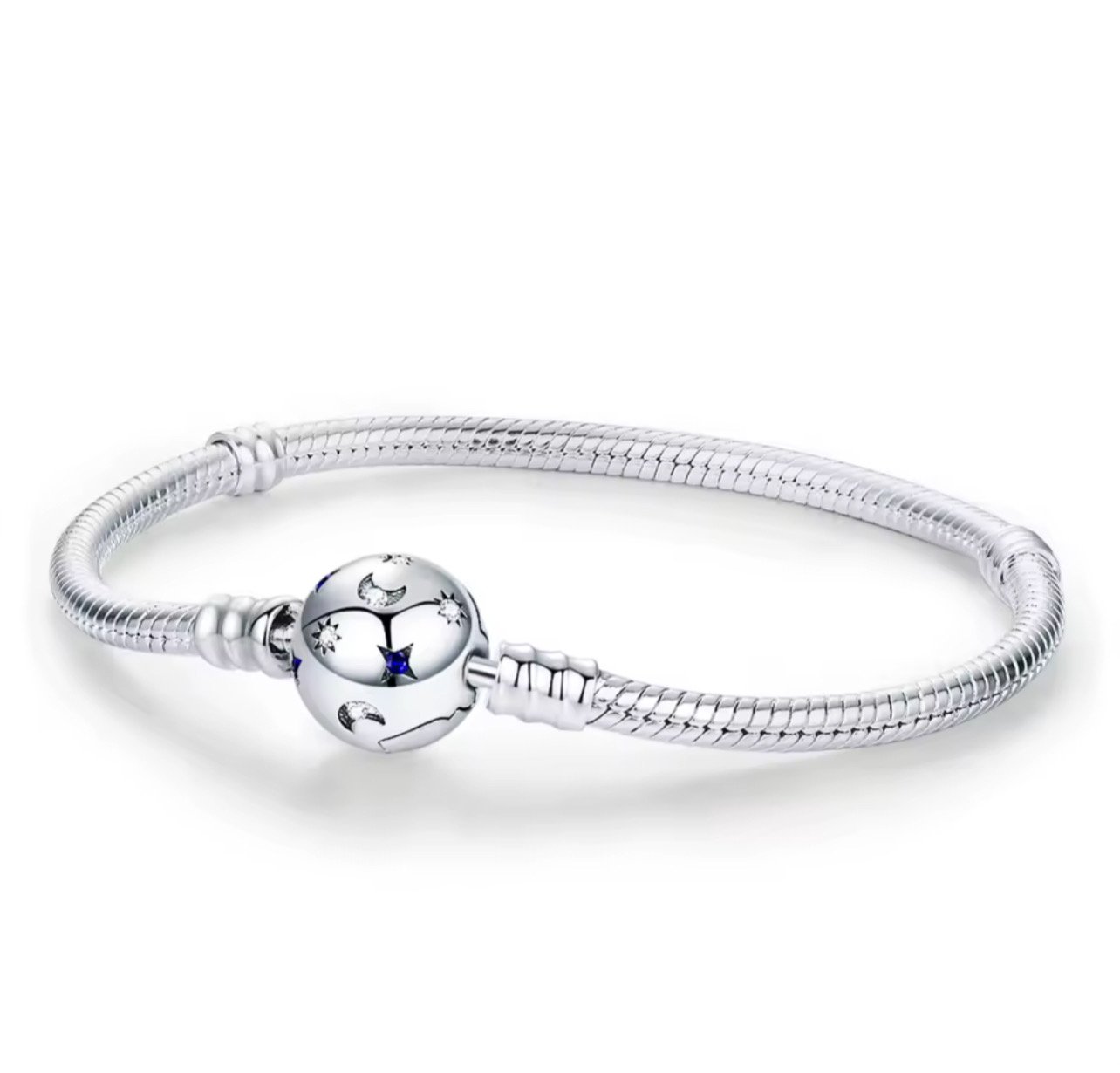 Βραχιόλι με στρογγυλό κούμπωμα με πετραδάκια σχέδιο αστεράκια ασήμι 925 16 cm