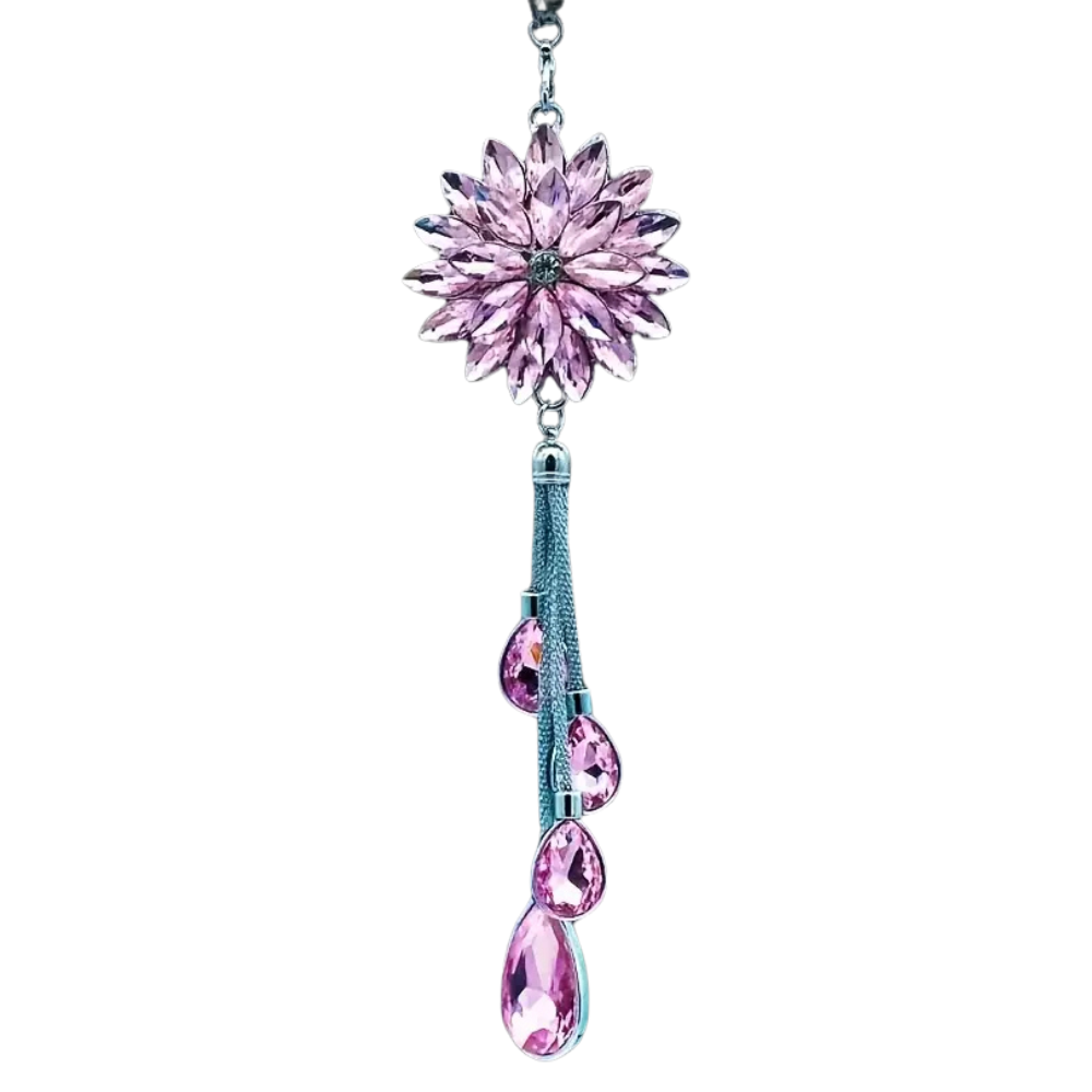 Διακοσμητικό Καθρέπτη Αυτοκινήτου Σε Σχέδιο Λουλούδι Με Κρύσταλλα – [3 Χρώματα] – Pink