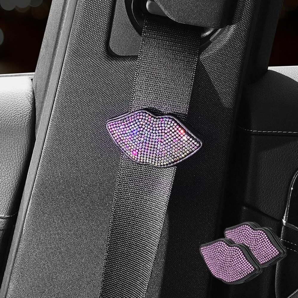 / Κλιπ Ζώνης Αυτοκινήτου Σε Σχήμα Χείλη Με Στρας – [3 Χρώματα] – Pink