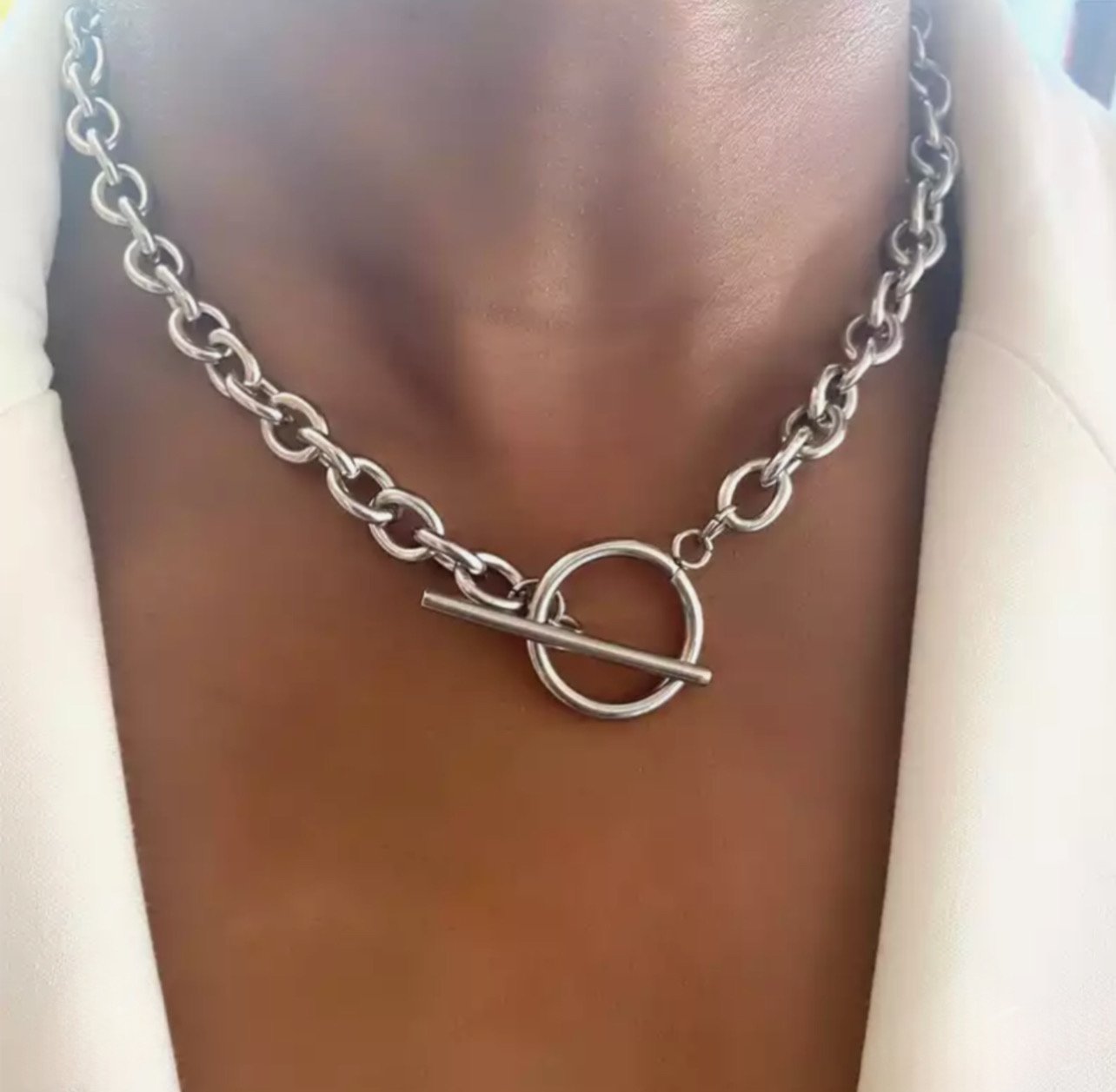 / Κολιέ αλυσίδα ατσάλι ασημί