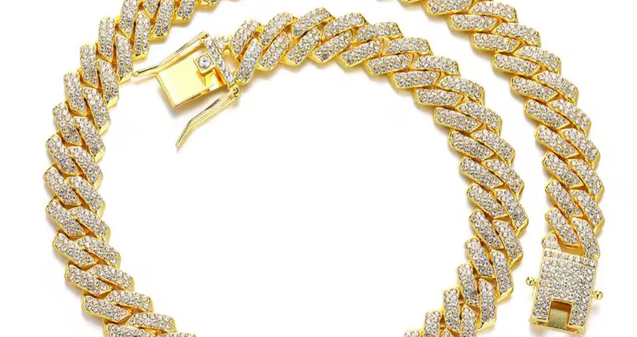 Κολιέ αλυσίδα Cuban με πέτρες και πέτρες στο κούμπωμα ατσάλι 40 cm