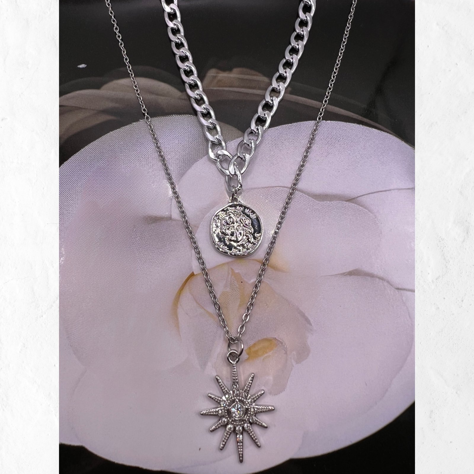 / Κολιέ διπλό με αστέρι και φλουρί ατσάλι