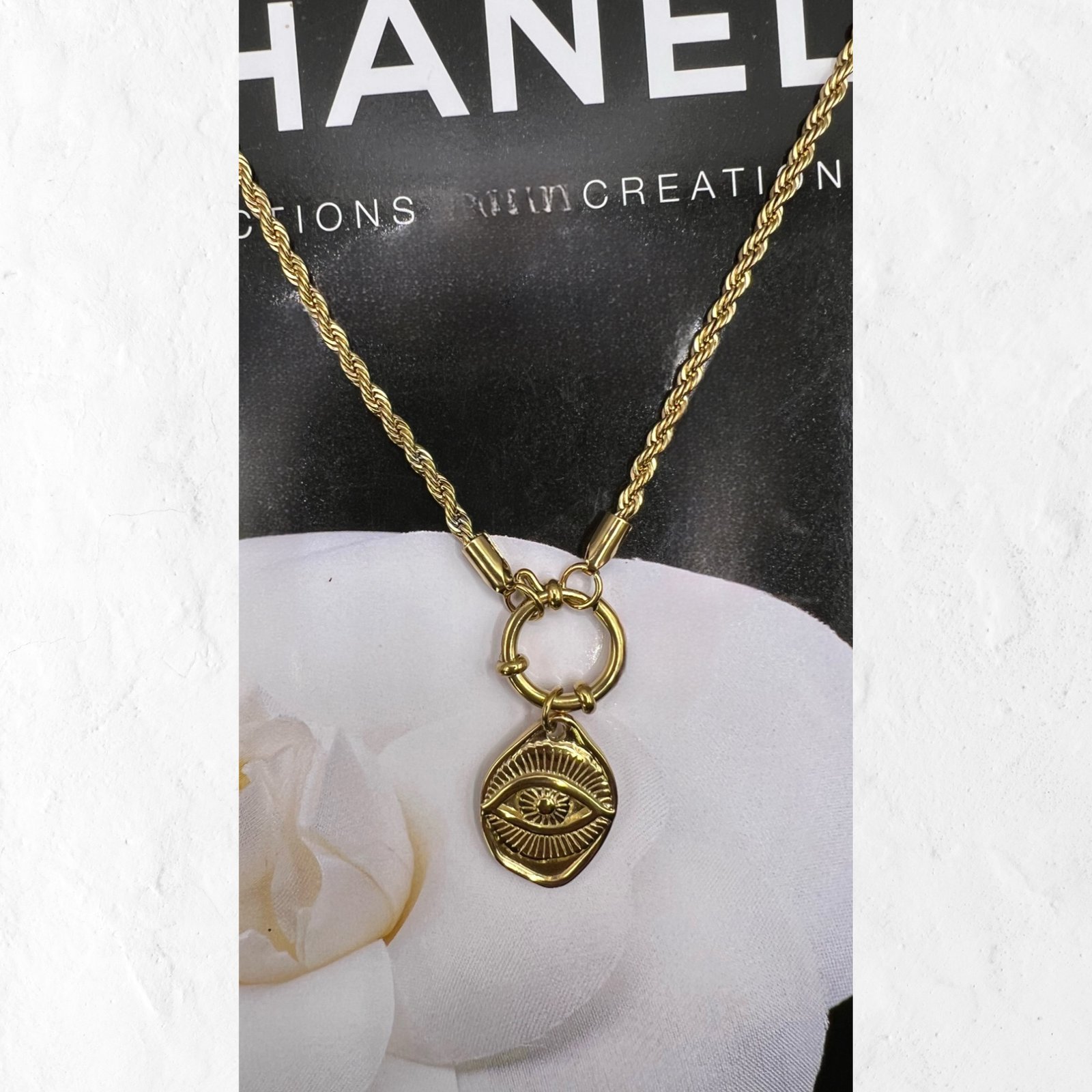 Κολιέ με στριφτή αλυσιδα με κρεμαστό  ματι  χρυσό ατσάλι 45cmΚολιέ με στριφτή αλυσιδα με κρεμαστό ματι χρυσό ατσάλι 45cm