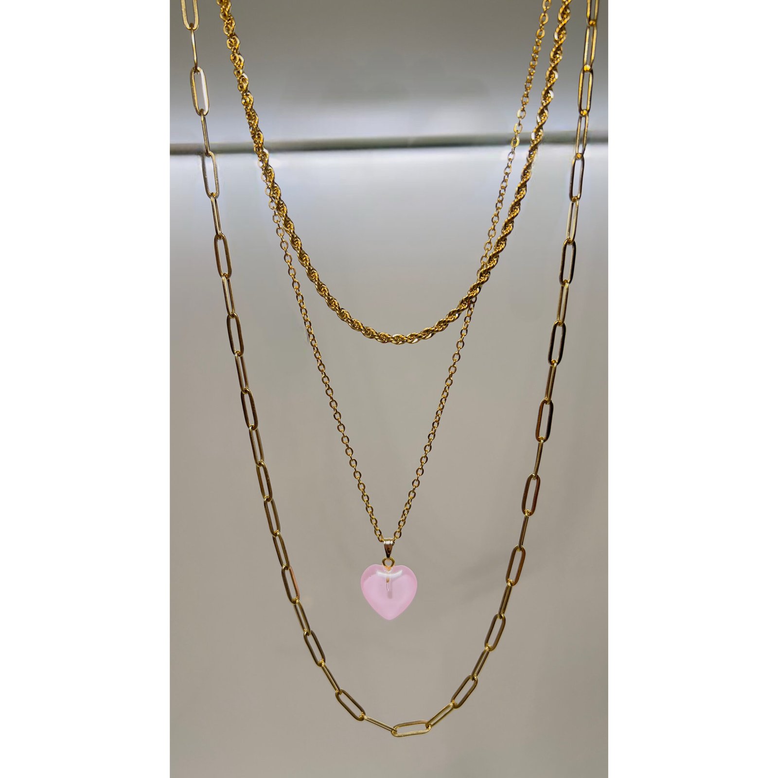 Κολιέ τριπλή σειρά με ροζ καρδιά ατσάλι ποσότητα