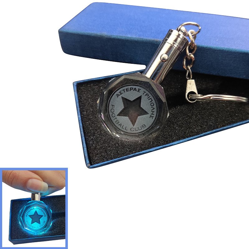 Κρυστάλλινο 3D Led Μπρελόκ Με Λογότυπο Ομάδων – Αστέρας Τρίπολης , With LED