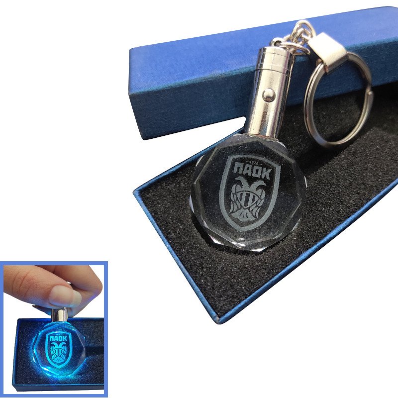/ Κρυστάλλινο 3D Led Μπρελόκ Με Λογότυπο Ομάδων – ΠΑΟΚ , With LED