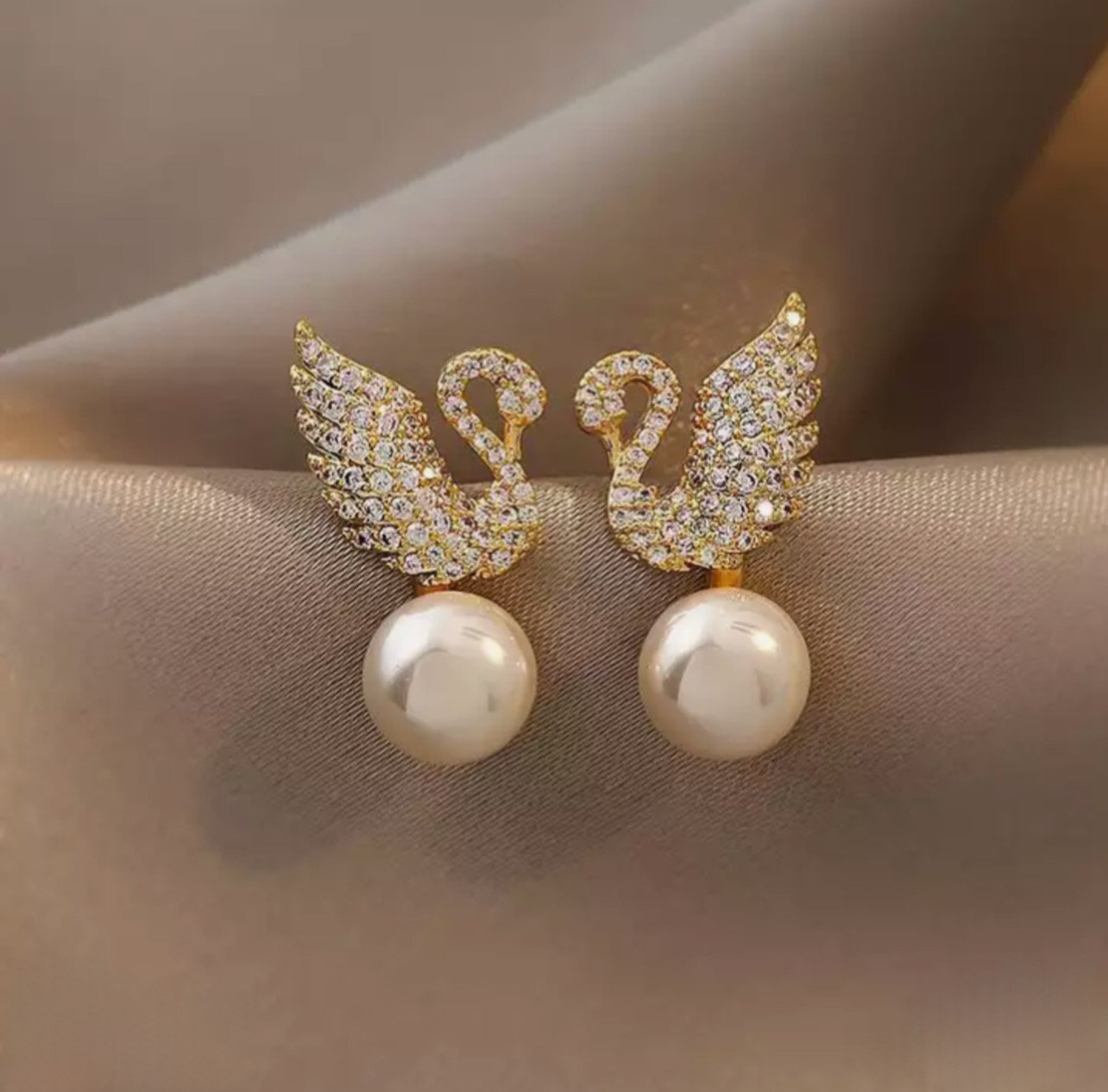 + Free ShippingΣκουλαρίκια ασημι 925 Μαργαριτάρι κύκνος με πετράδια