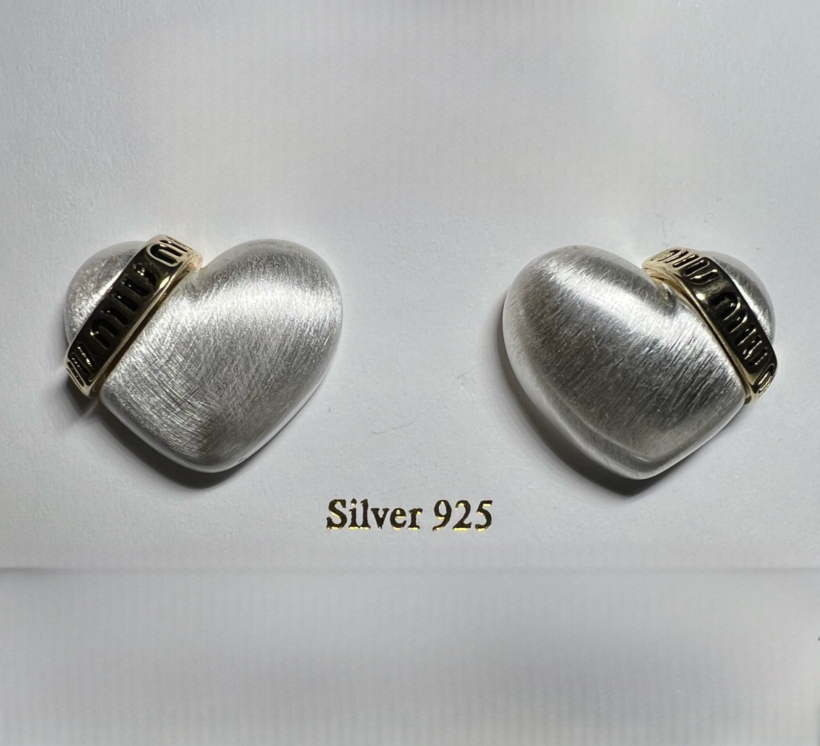 / Σκουλαρίκια καρδιά ασημί με χρυσό λογότυπο ‘τύπου miumiu’