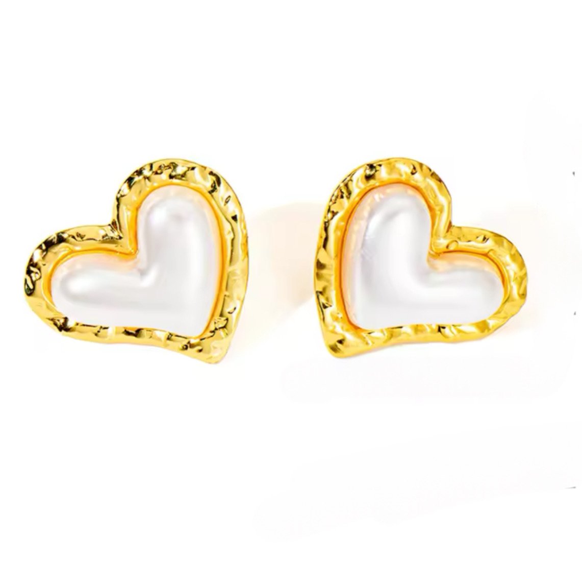 Σκουλαρίκια καρδιά πέρλα χρυσό ατσάλι