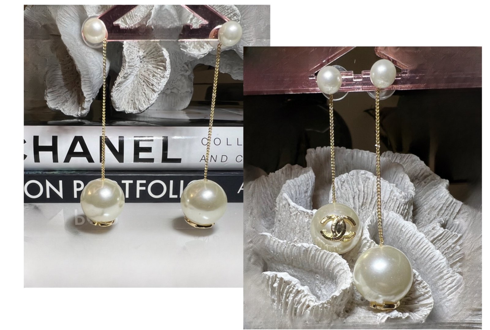 Σκουλαρίκια μακριά με μαργαριτάρια χρυσά ‘τύπου Chanel’ ατσάλι ποσότητα