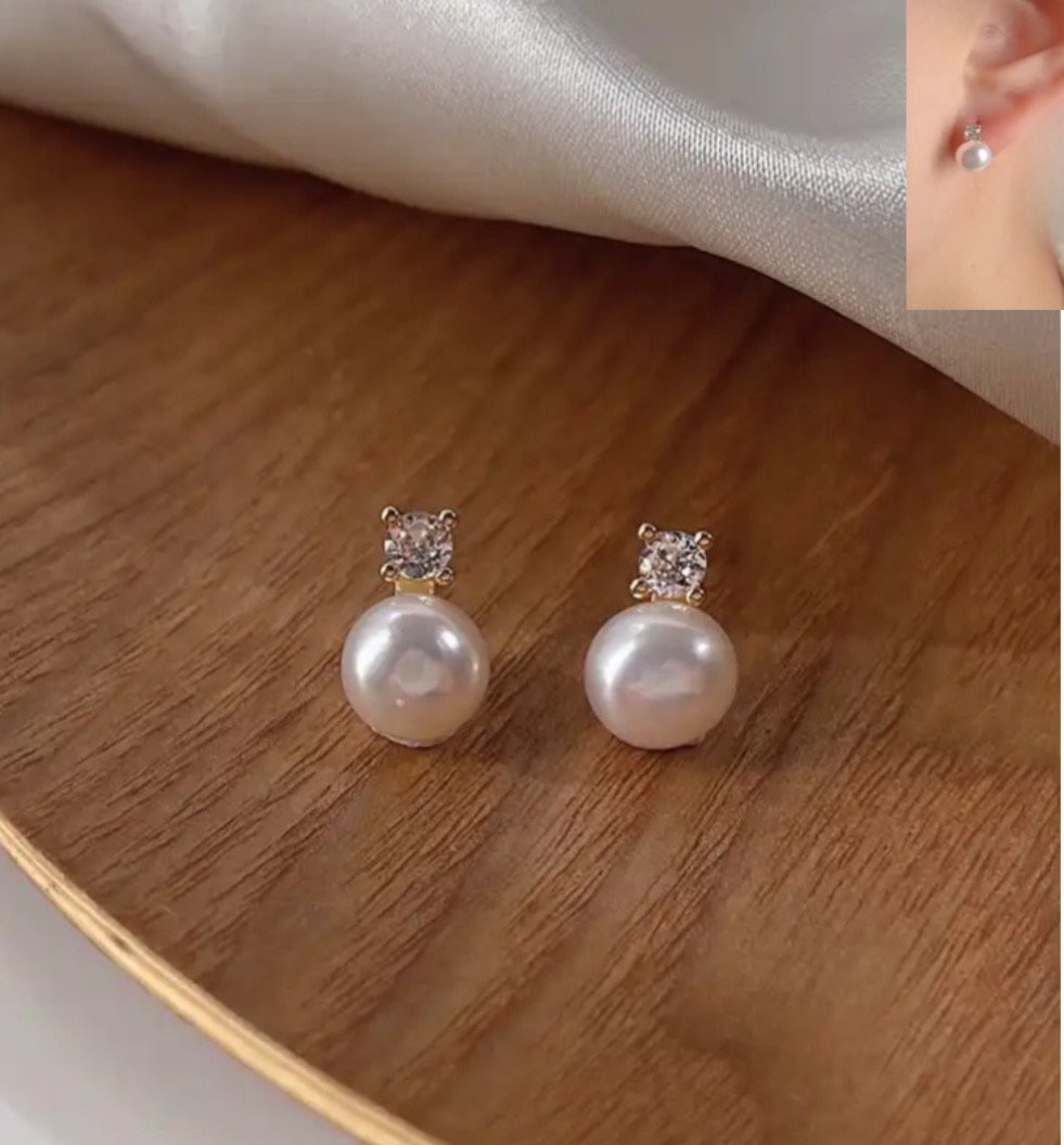 / Σκουλαρίκια μαργαριτάρι με πετράδι με χρυσό κούμπωμα ασημι 925