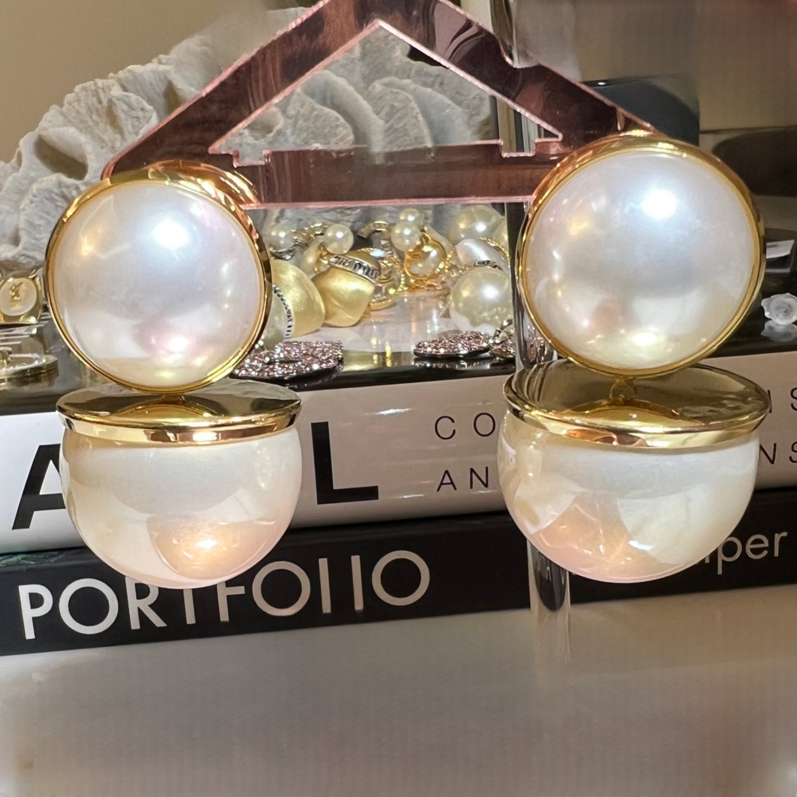 / Σκουλαρίκια με μεγάλα δίπλα μαργαριτάρια ατσάλι