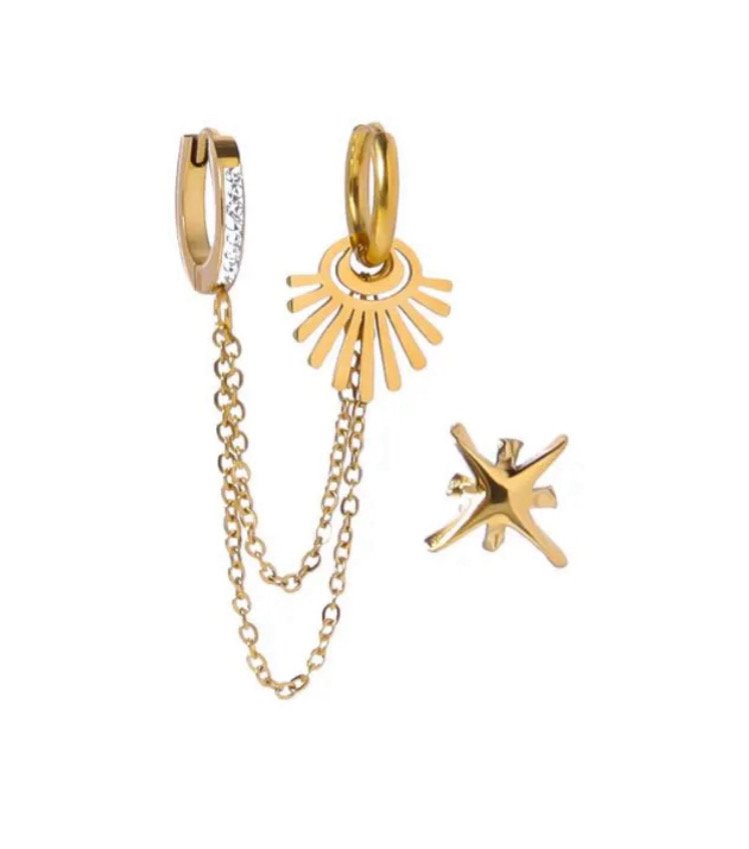 Σκουλαρίκια τριπλή σειρά χρυσό ανοξείδωτο ατσάλι αδιάβροχο ποσότητα