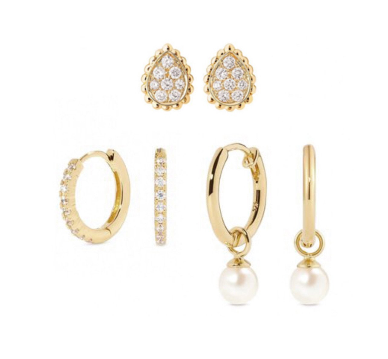 Σκουλαρίκια τριπλό σετ μαργαρίτα και γυαλιστερά ζιργκονακια ατσάλι ποσότητα