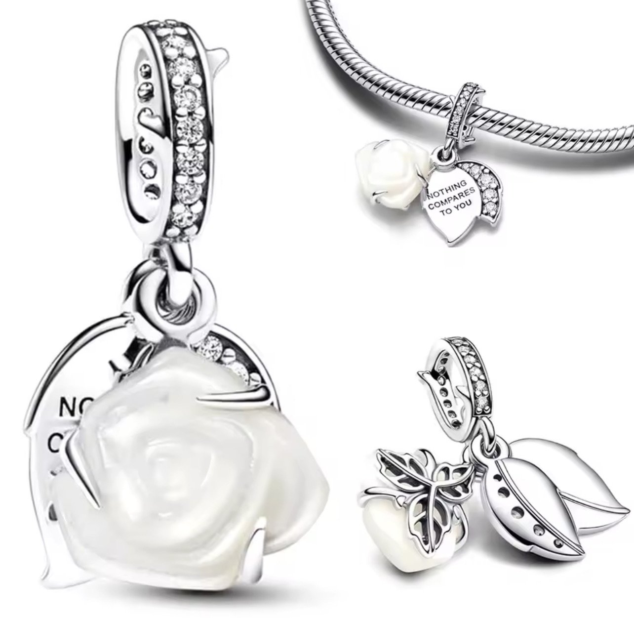 Σύμβολο διπλό, τριαντάφυλλο λευκό με άνθος ασήμι 925