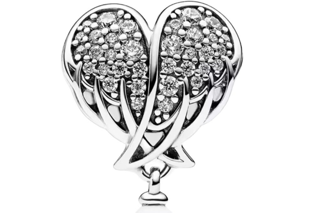 Σύμβολο καρδιά με μοτίβο φτερά και κρεμαστη πέρλα ασήμι 925