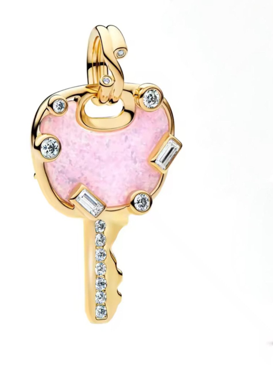 Σύμβολο κλειδί χρυσό ροζ ιριδίζον με πετρούλες love ασήμι 925