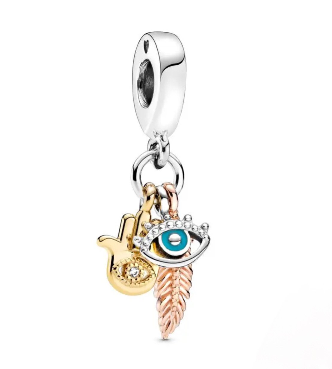 Σύμβολο κρεμαστό τύχη με φτερό, μάτι, παλάμη ασήμι 925