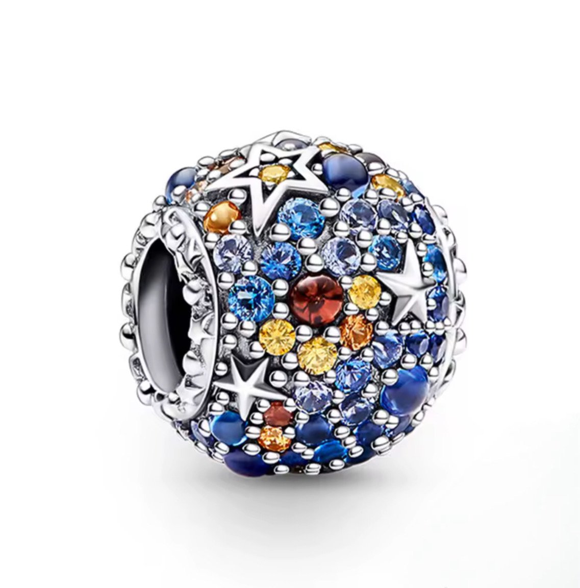 Σύμβολο με αστέρια και πολύχρωμες πετρούλες γαλαξίας ασήμι 925Σύμβολο με αστέρια και πολύχρωμες πετρούλες γαλαξίας ασήμι 925