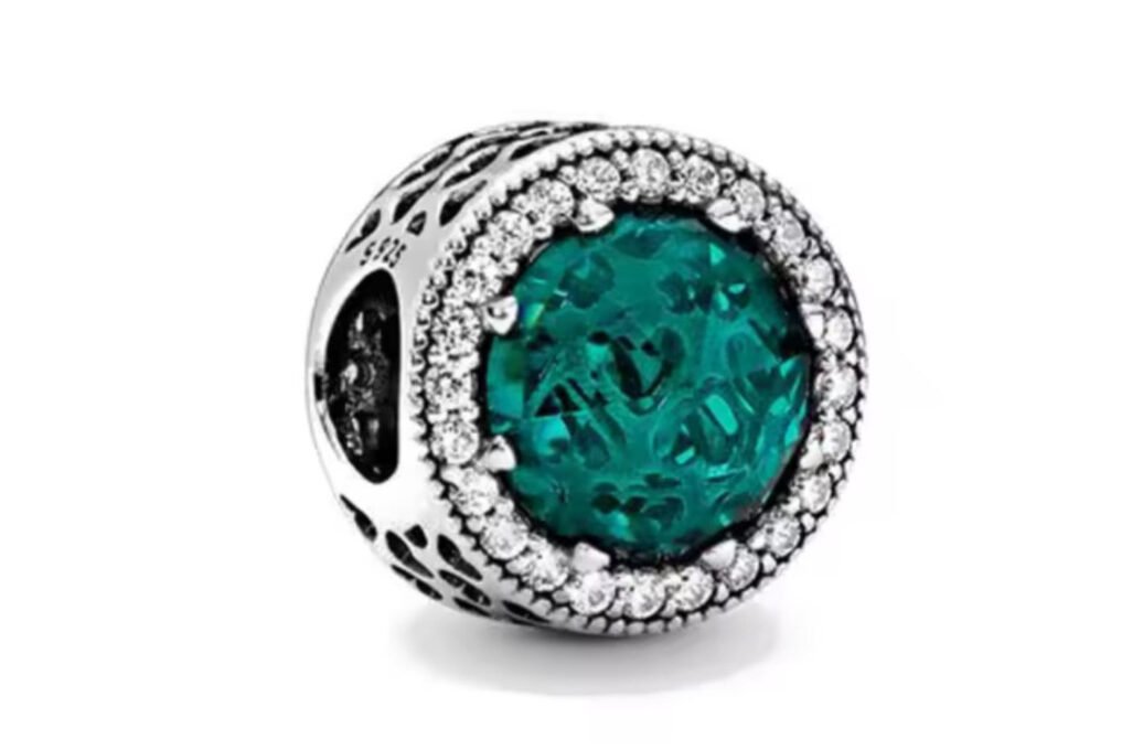 Σύμβολο στρογγυλο με πράσινη πέτρα και πετραδάκια ασήμι 925